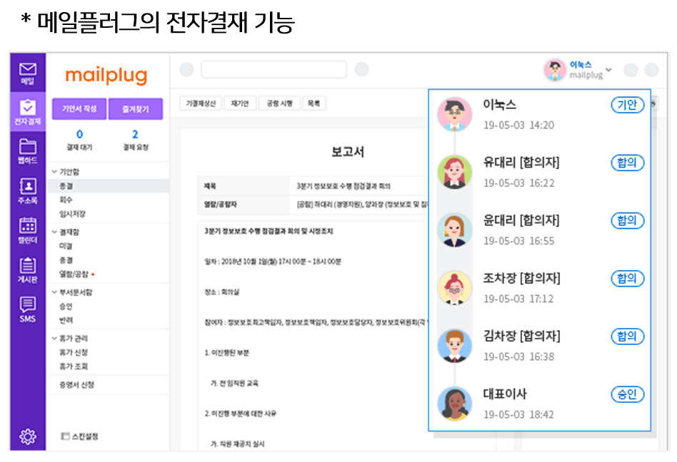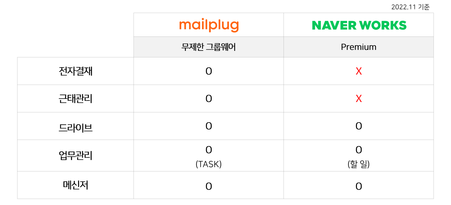 전자결재와 근태관리는 메일플러그에서만 제공 중이었습니다.