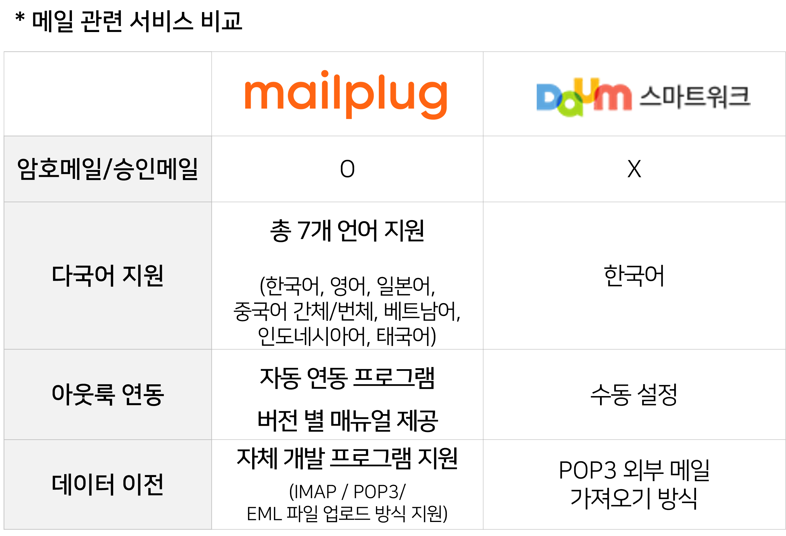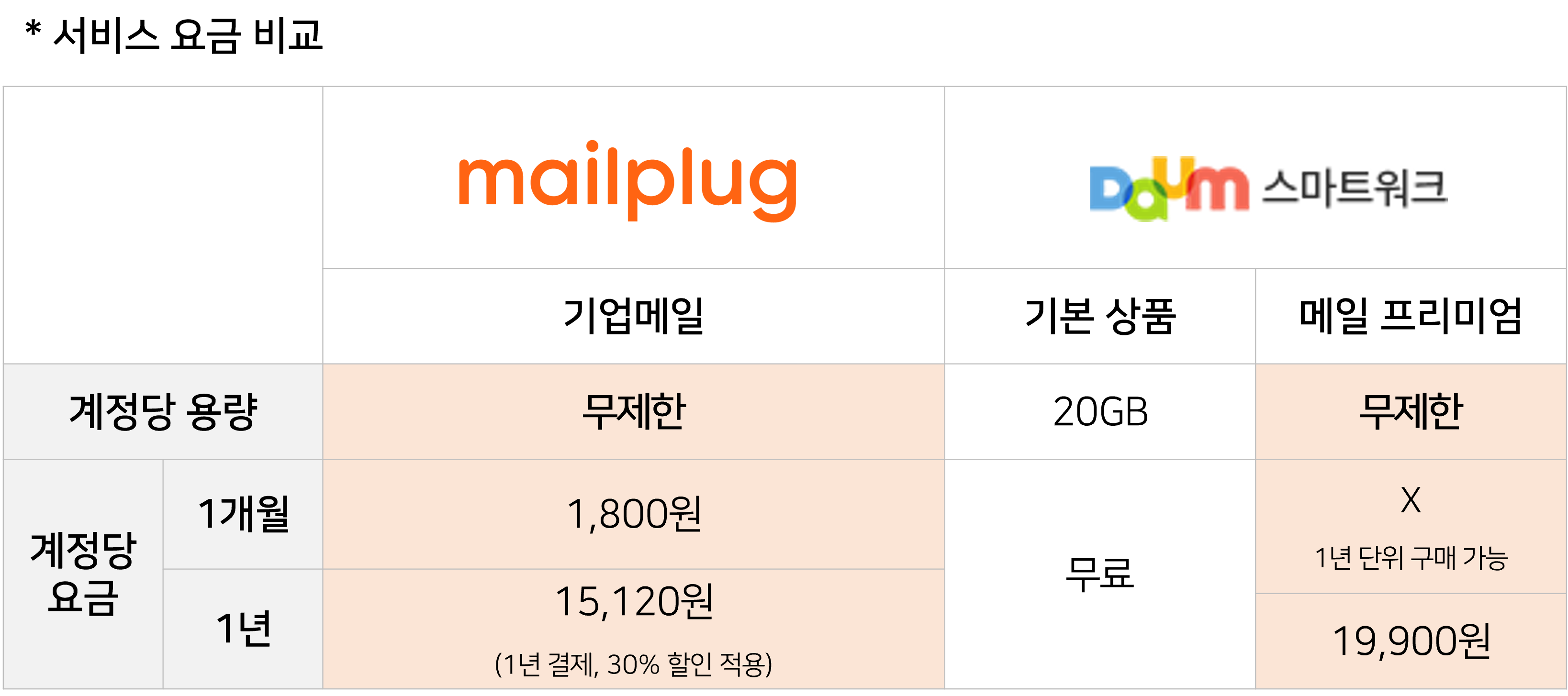 웹메일 관련 서비스 또한 자세하게 비교해보았습니다.