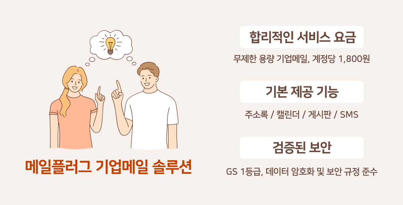 저희 메일플러그는 무제한 용량 + GS 1등급으로 검증된 기업메일,
