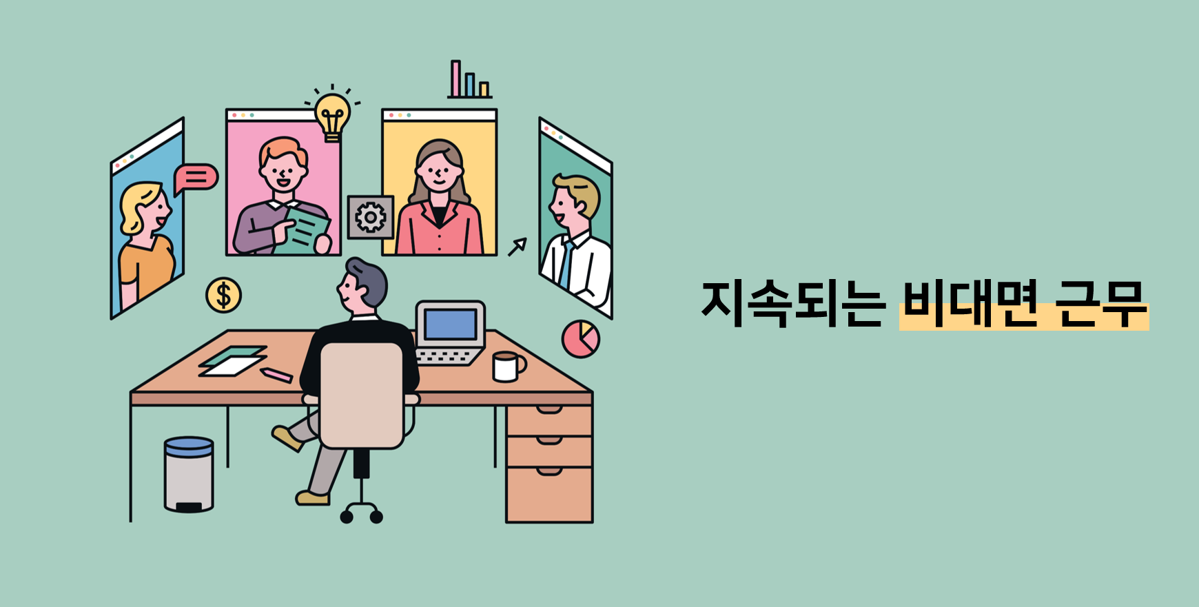 그렇기 때문에 앞으로 비대면 원격근무는 유지되거나 더욱 확산될 가능성이 있죠.