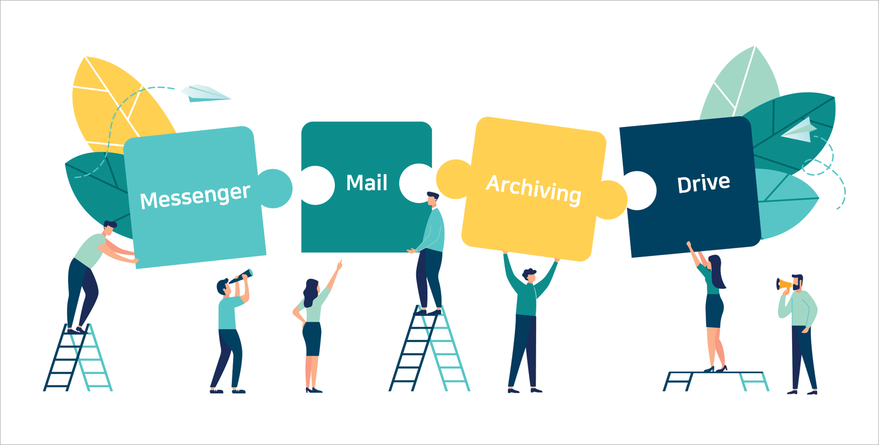 메신저는 물론 기업메일, 전자결재, 근태관리 등