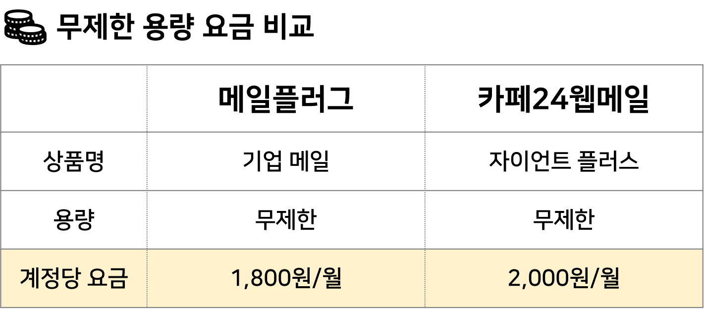 카페24웹메일은 2,000원에 제공하고 있는데요.