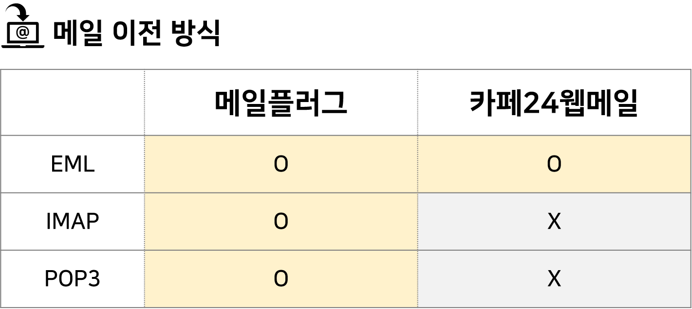반면, 카페24웹메일은 eml 방식만 가능합니다.