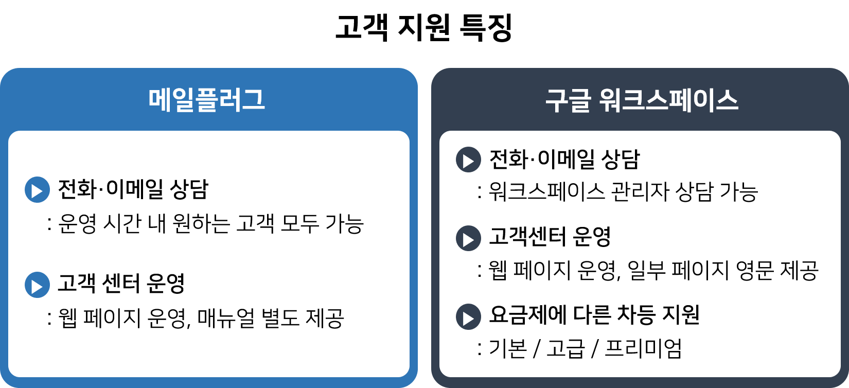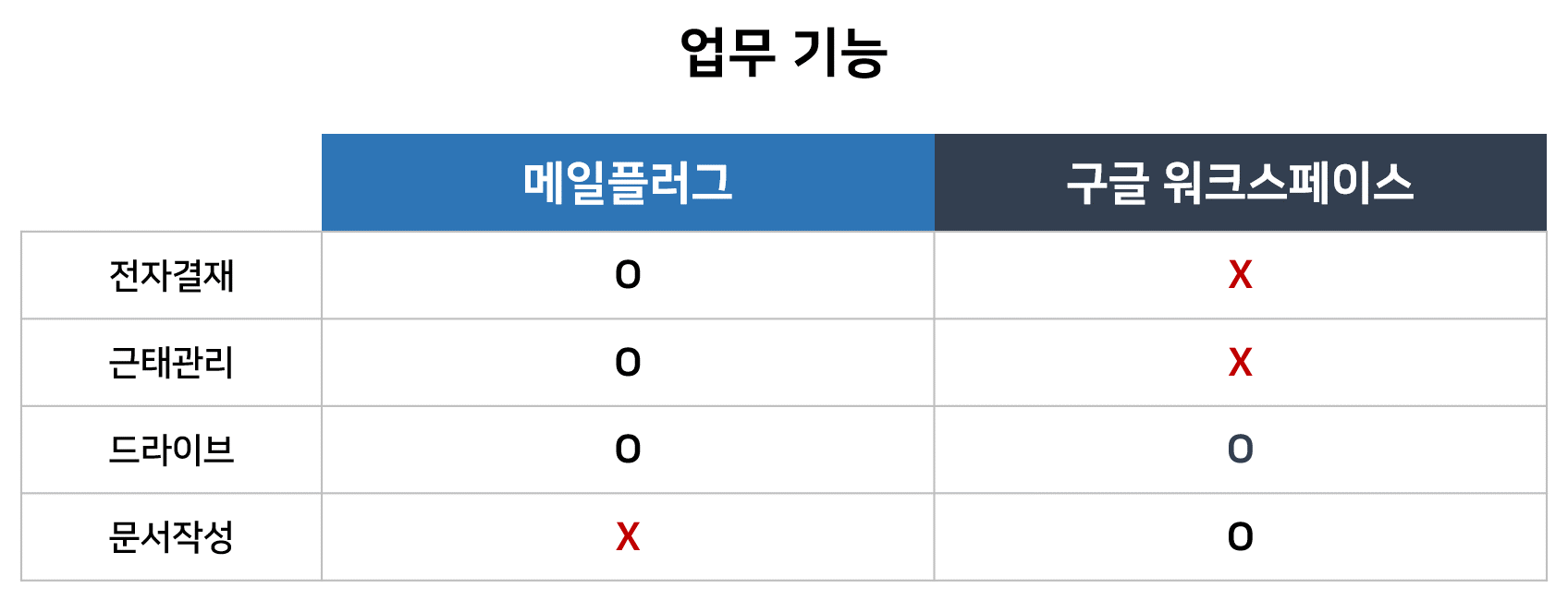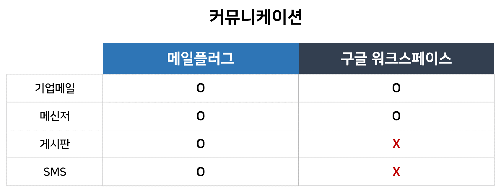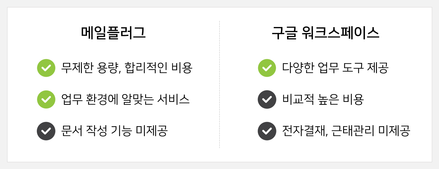 구글 워크스페이스와 메일플러그를 비교해보겠습니다.