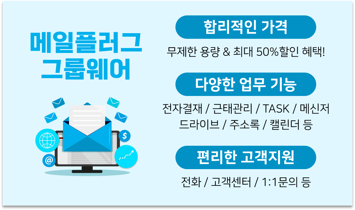 전자결재나 근태관리까지 필요한 기업은 메일플러그가 적합하죠.