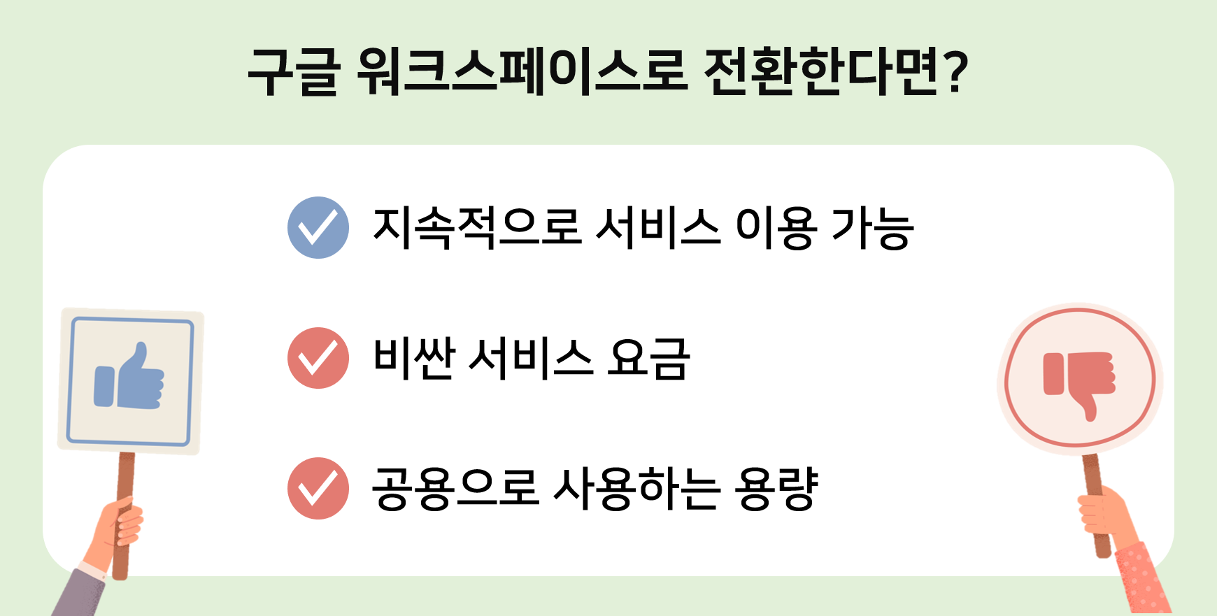 이처럼 구글 워크스페이스로 유료 전환한다면,