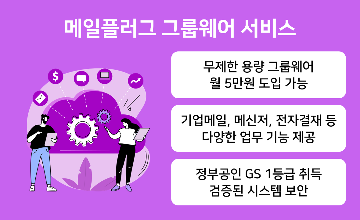 메일플러그의 무제한 그룹웨어가 가장 합리적인데요.