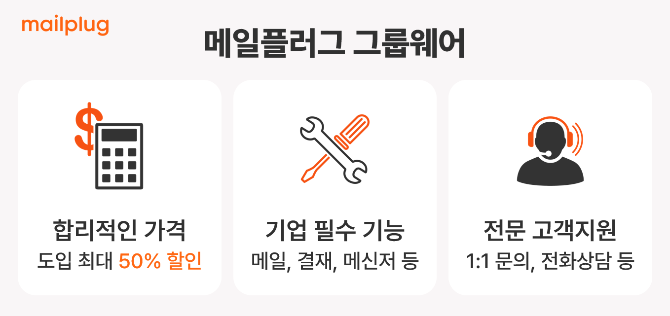 저희 메일플러그에서는 무제한 용량 그룹웨어 도입 시