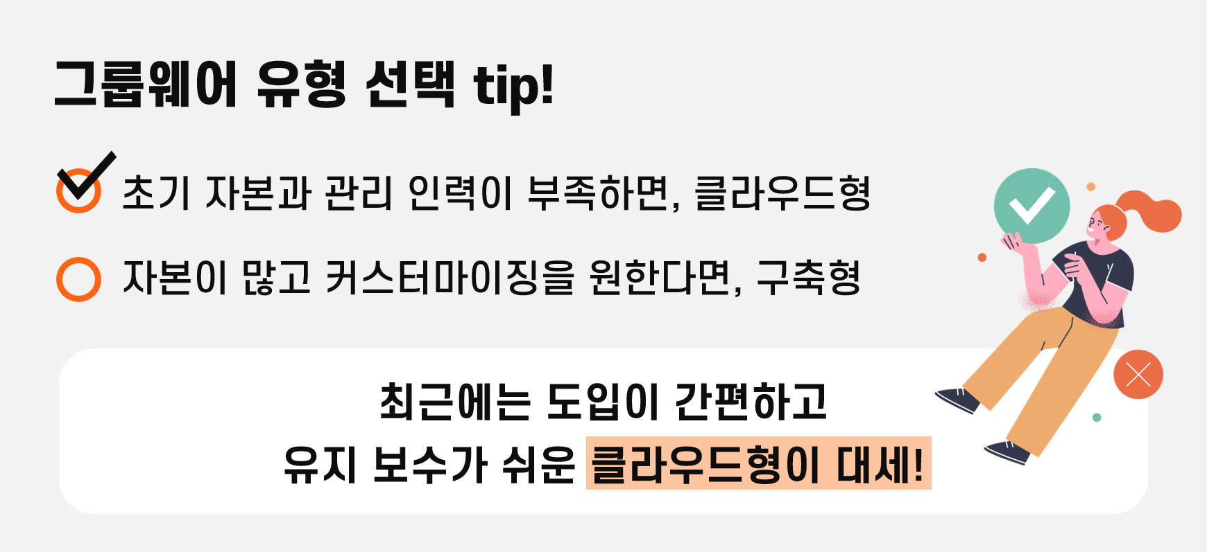 이와 다르게 클라우드형은 그룹웨어 전문 업체에서