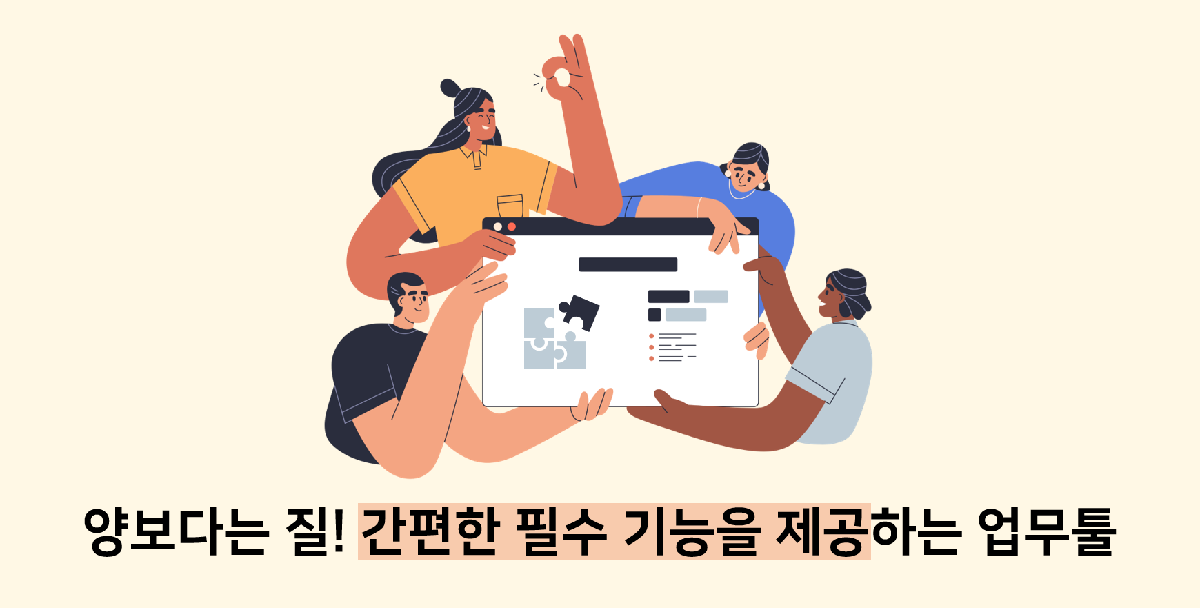 필수 기능만 제대로 제공하는 업무툴이 더 바람직합니다.