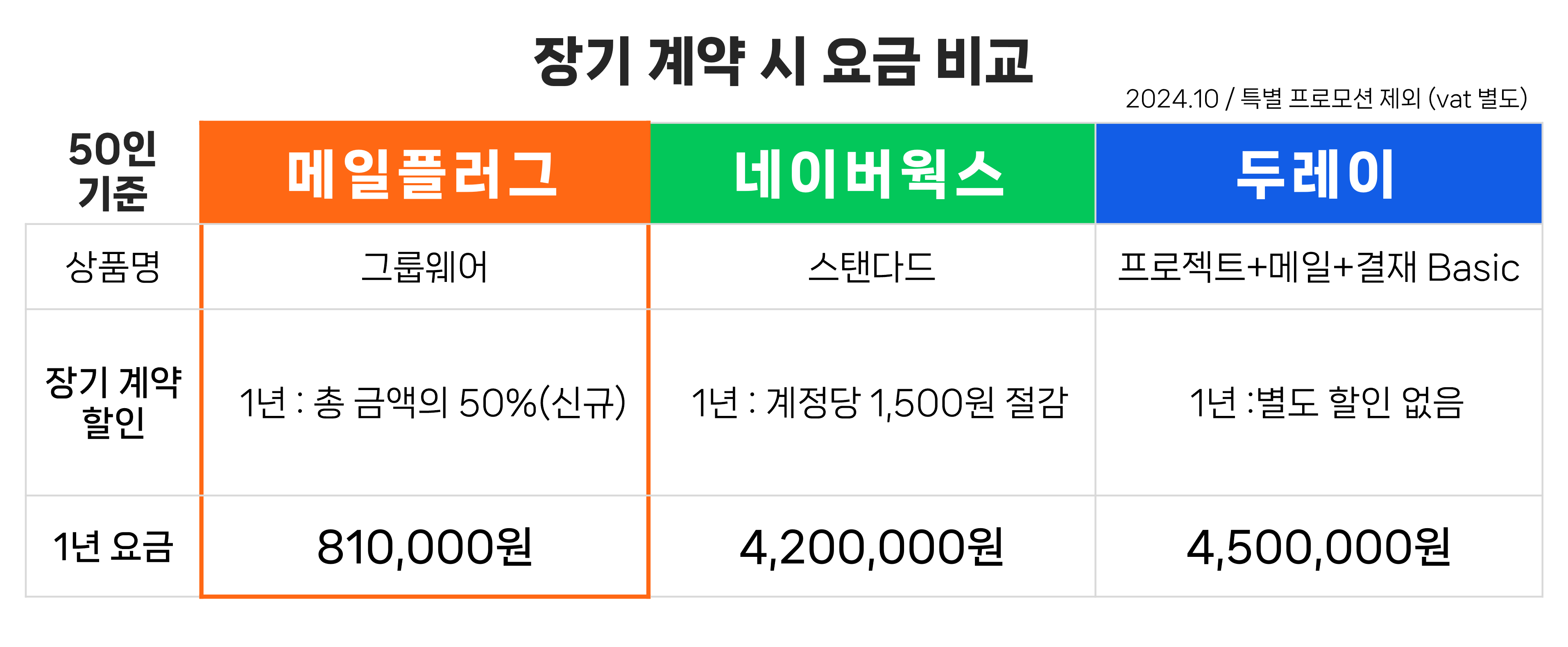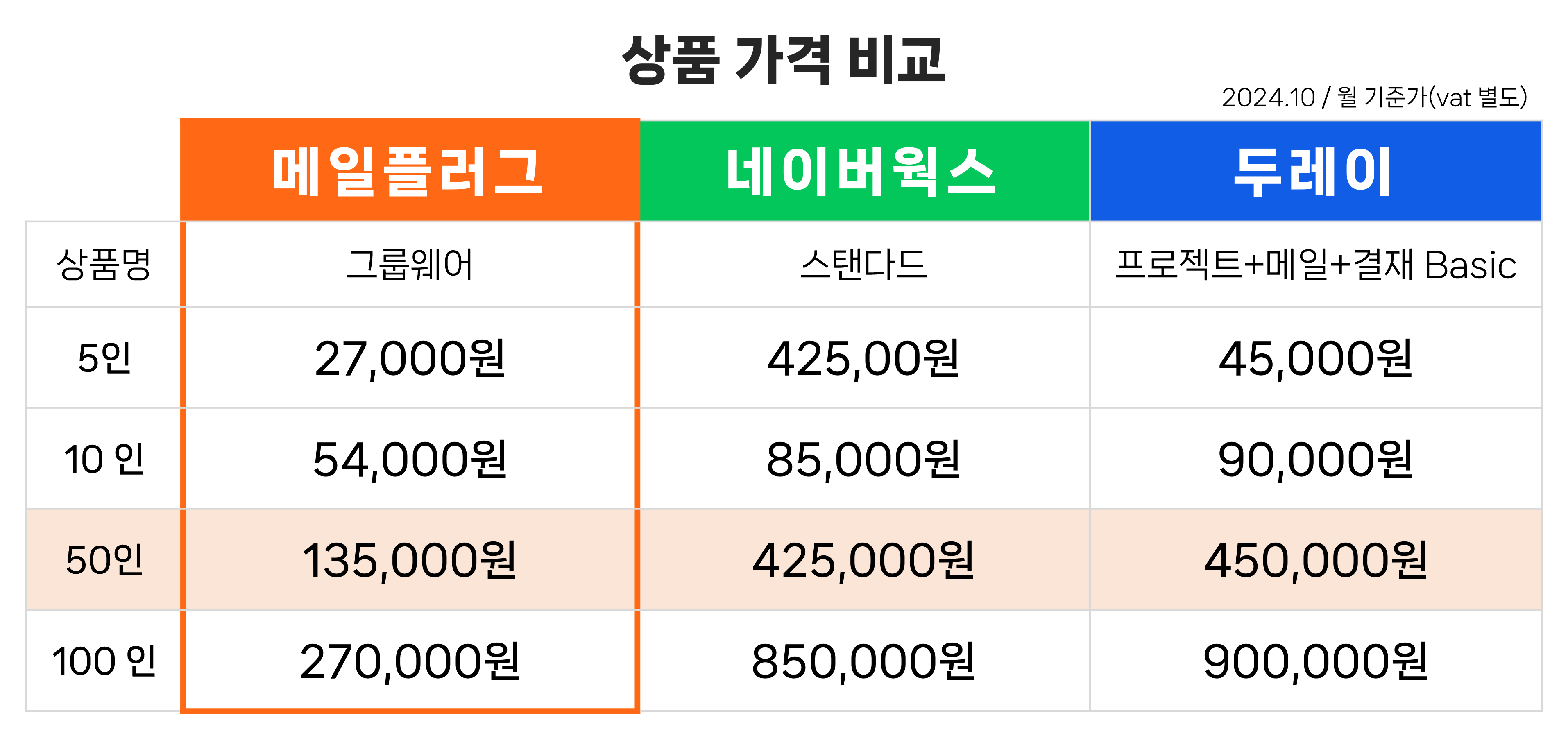 네이버웍스 및 두레이와는 약 3배가 나는데요.