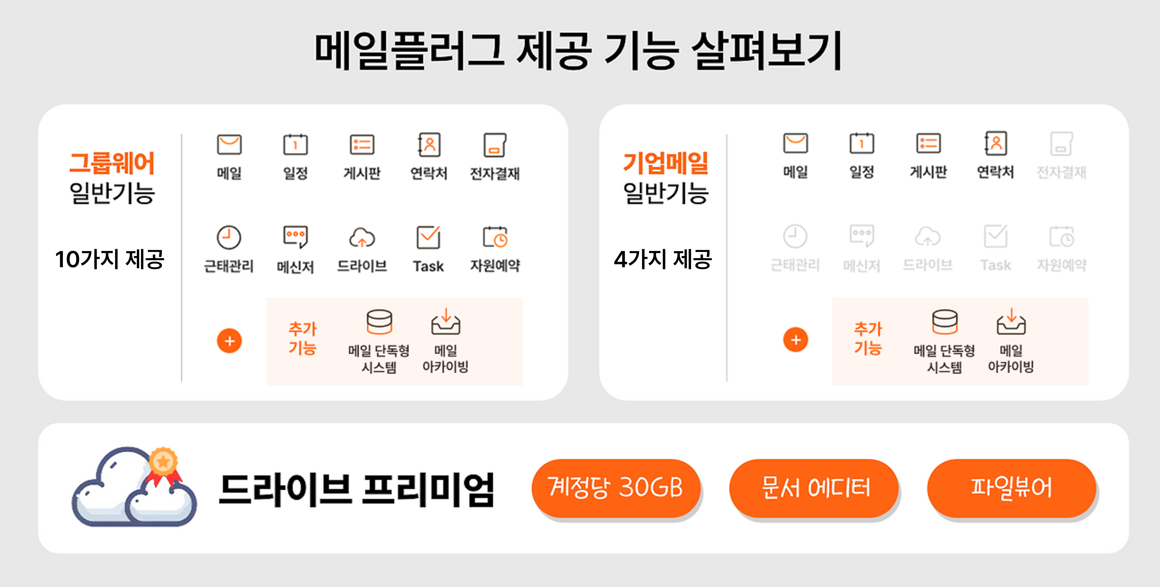 이제는 넉넉한 용량으로 기업메일/그룹웨어 고객분들