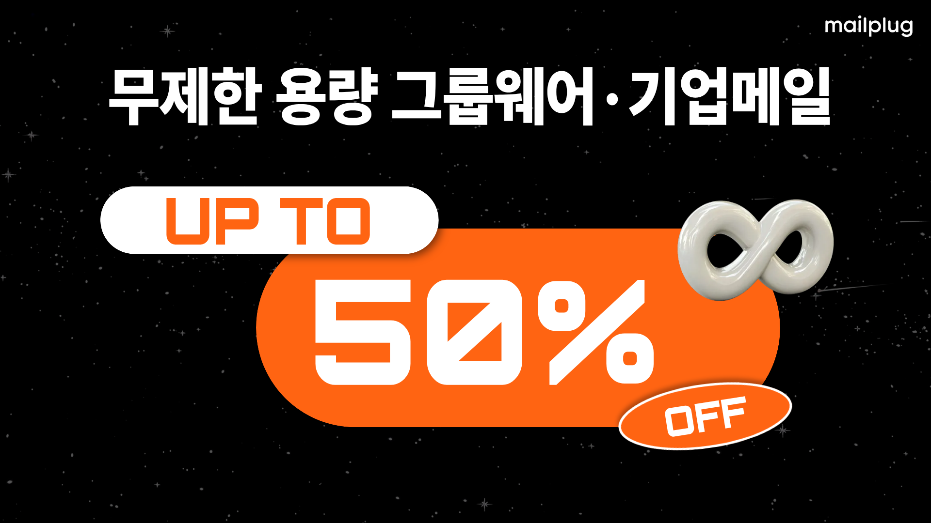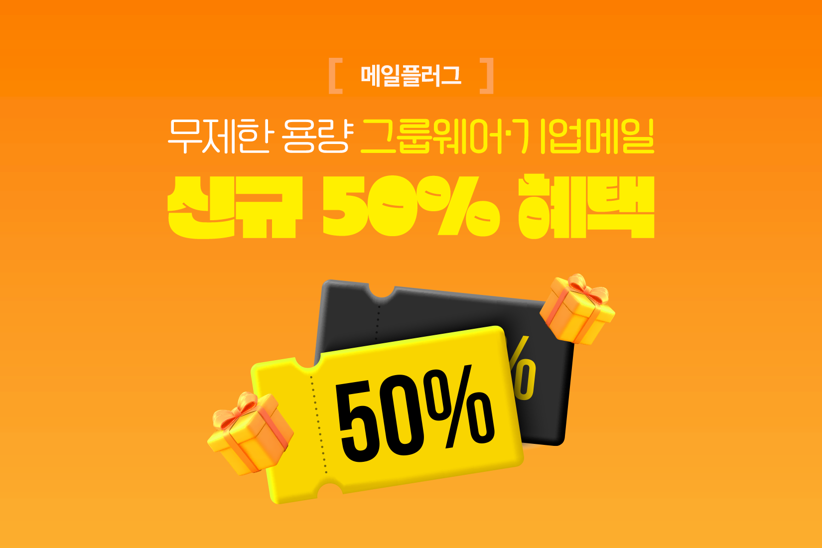 기업메일도 50% 혜택을 적용 받아 도입할 수 있습니다.