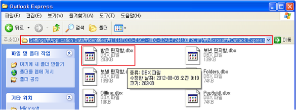 Step 5. '받은 편지함.dbx' 를 '받은 편지함.old' 로 확장자명을 변경합니다.